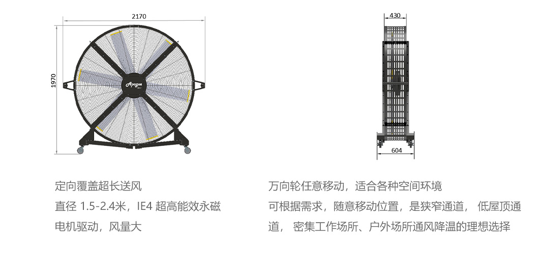 直徑 1.5-2.4米,IE4 超高能效永磁電機驅動,風量大
