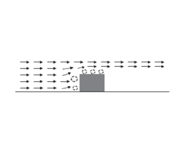 地面的障礙物會阻礙空氣流動, 小的或流線型障礙物不會阻塞太多的空氣流動, 但當氣流遇到大的障礙物,氣流會失去部分動力,并在部分區域產生空氣停滯(沒有風)。氣流通過大障礙物,空氣流會改變方向向上, 障礙物后面將不會有氣流通過。